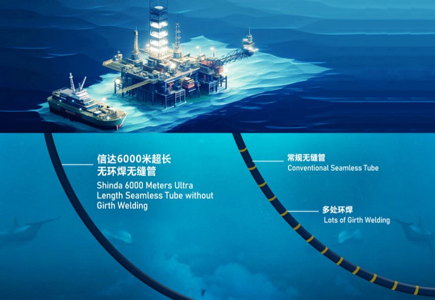 Shinda Creative? customizes engineering Hi-tech (IP 71202220093537.7) 6000 meters ultra length seamless tube without girth welding, effectively solve conventional seamless tube potential welding internal burrs and groove corrosion, avoid welding defects like partial welding and lack of weld, which multiplies increase product life and reliability for more benefit to customers with superior cost savings.